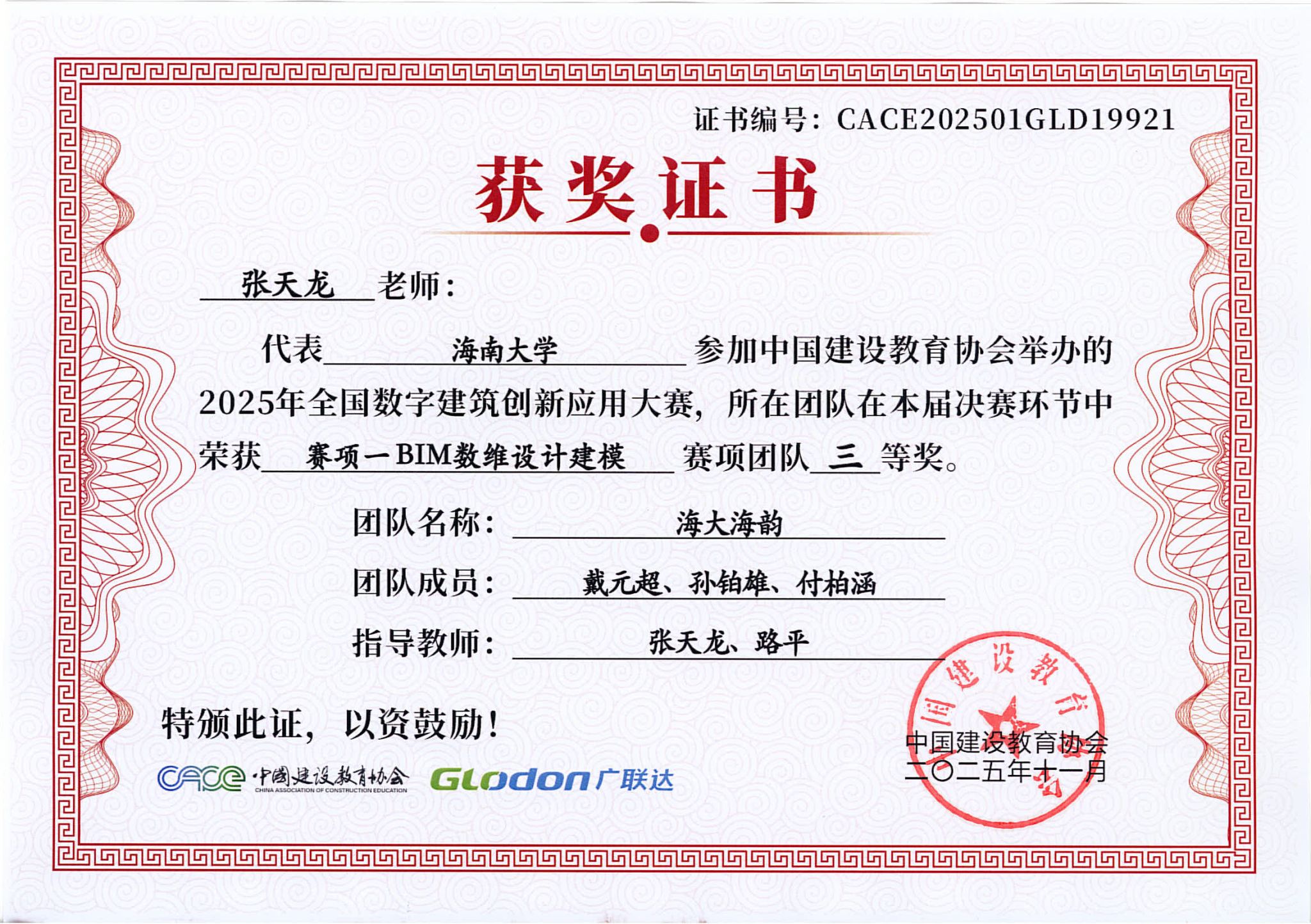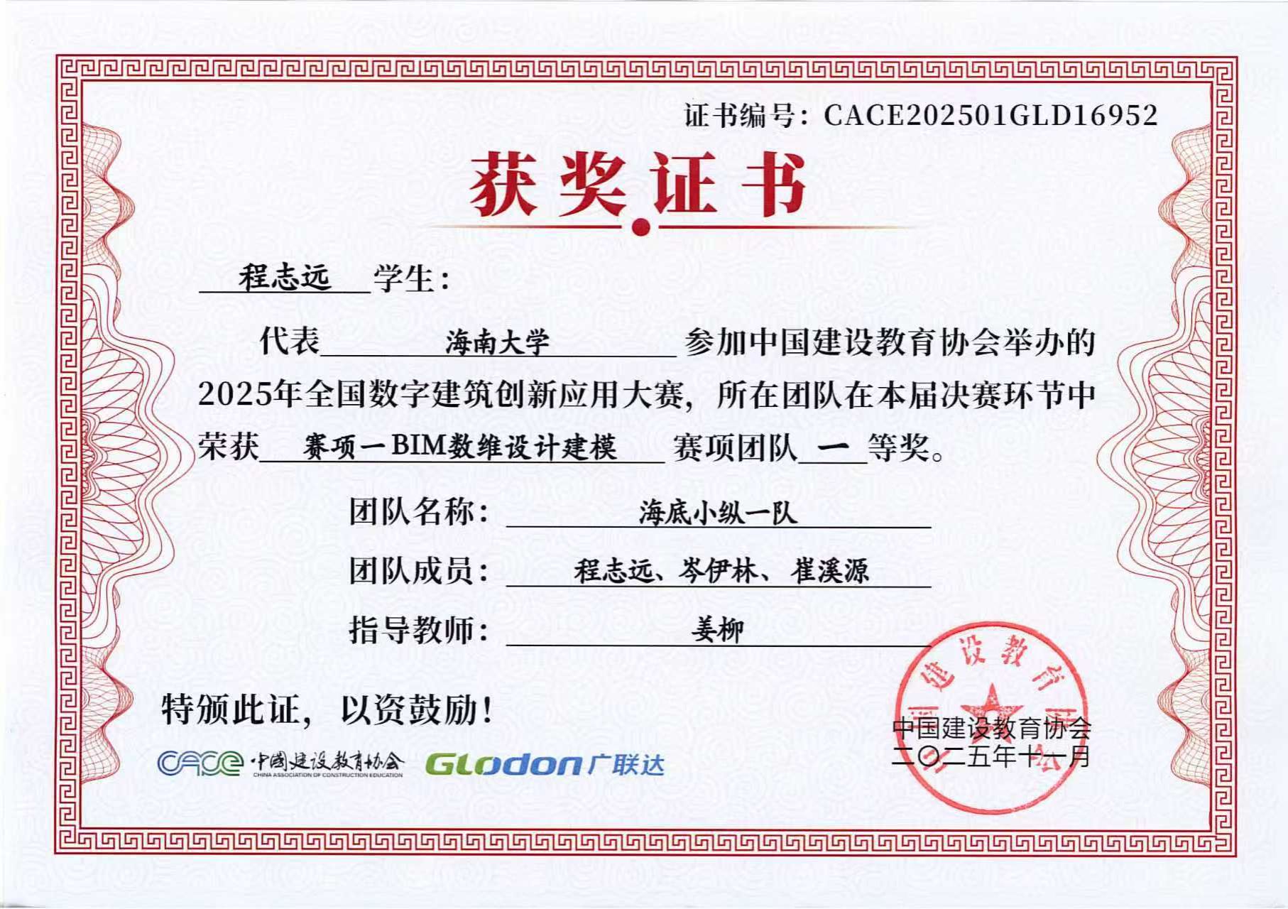 2025年11月3日,2025年全国数字建筑创新应用大赛总决赛成绩揭晓,由威廉体育williamhill官网BIM协会选送的3支员工参赛队伍全部进入全国总决赛,并且斩获全国总决赛一等奖1项、二等奖1项和三等奖1项,取得协会历史最好成绩!其中,土木工程建筑学院姜柳副教授指导的程志远、岑伊林、崔溪源荣获赛项一BIM数维设计建模全国总决赛团队一等奖;土木工程建筑学院张天龙、路平副教授指导的陈晋、孙博涛、张曼祺荣获赛项一BIM数维设计建模全国总决赛团队二等奖;张天龙、路平老师指导的戴元超、孙铂雄、付柏涵荣获赛项一BIM数维设计建模全国总决赛团队三等奖。