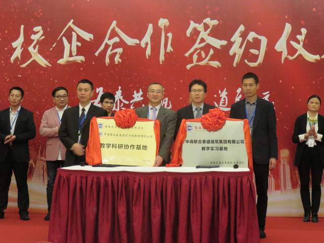 为了充实工程实践教学内涵与增强教师服务社会能力,学院决定与中商联合泰盛建筑集团有限公司缔结院企合作关系,共建“教学科研协作基地”,推进产学研深度结合。1月27日下午,威廉体育williamhill官网曹宝珠经理与中商联合泰盛建筑集团有限公司陈金才董事长签订校企合作协议。未来土木学院将为泰盛集团提供人才储备和工程项目咨询;同时,泰盛集团可以给土木学院提供教学实习基地和教学科研协作基地。出席本次签约仪式的领导还有卢江海书记、邱宙廷副经理、陈云副经理、罗玲球副书记,以及泰盛集团的相关领导。