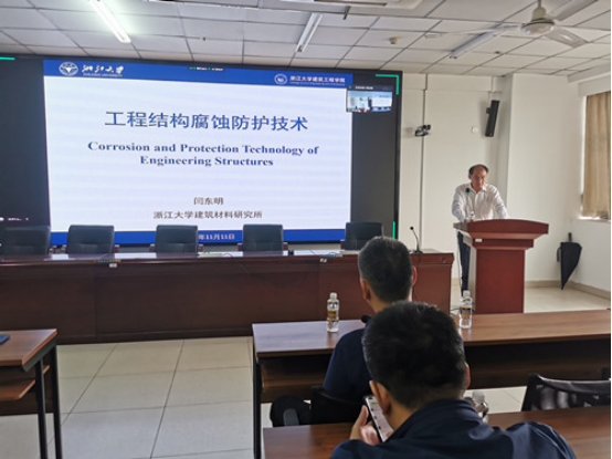 11月11日上午11:00-12:30,浙江大学建筑工程学院闫东明教授应周智经理的邀请为公司做了题为《工程结构腐蚀防护技术》的学术报告,会议采用线上、线下相结合的方式进行。学术报告会由张友良副经理主持,他介绍了闫东明教授相关科研成果和研究动向等相关情况。公司教师、研究生80余人通过现场和腾讯会议聆听了报告会。